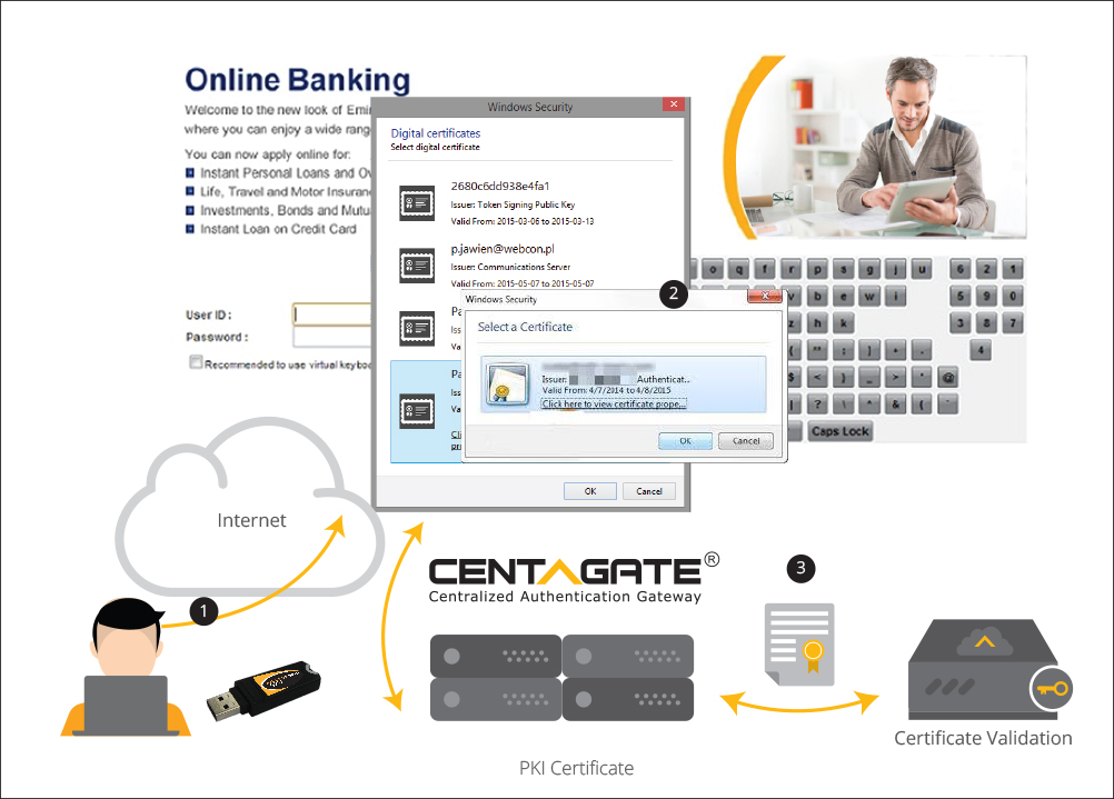 Note: Client digital certificate can either be in software form (p12) or inside a PKI token (hardware token). A Certificate Authority, which is not within the scope of CENTAGATE®, shall issue those digital certificate.