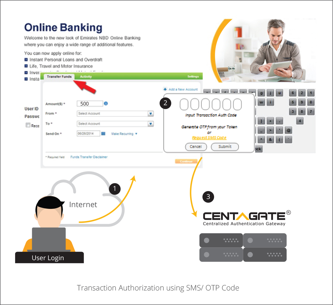 Note: If using SMS code, CENTAGATE® needs to integrated with SMS gateway provider. OTP code can be from a hardware token or mobile app.