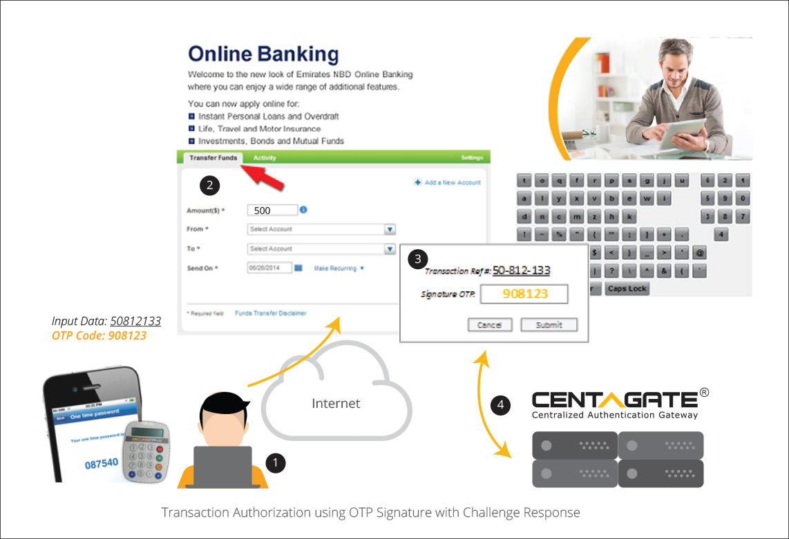 Note: OTP signature is generated from a CR token, either a hardware token or CENTAGATE® mobile app.